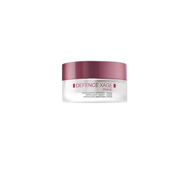 La crema rivitalizzante levigante Defence Xage Prime rende la pelle luminosa e levigata, contrastando il foto-invecchiamento per una ritrovata luminosità e una cute più liscia e levigata. Questo trattamento presenta una texture leggera e di rapido assorbimento, che leviga e dona morbidezza e luminosità alla pelle dove si manifestano i primi segni d’invecchiamento. Contiene Rejuvenate SGF, che favorisce la fisiologica produzione di collagene ed elastina, combinato con estratto di litchee dall’azione anti-radicali liberi e protettiva contro lo stress ossidativo. Questa crema è utile per le giovani donne, per contrastare i primi segni dell'avanzare dell'età, grazie alla sua azione antirughe. La pelle risulta distesa, rimpolpata e levigata.