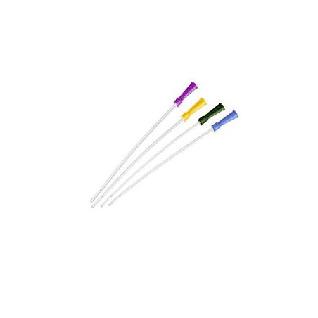 IN PVC TRASPARENTE PUNTA DRITTA - FEMMINILECatetere monouso per il cateterismo intermittente. Quest'ultimo é un metodo terapeutico che permette il drenaggio vescicale in caso di ritenzione urinaria parziale o totale. Il catetere raggiunge la vescica mediante l'attraversamento dell'uretra. Il particolare trattamento della superficie esterna e la punta piena dolcemente arrotondata, garantiscono la massima protezione dei tessuti sensibili dell'uretra. Il particolare disegno dei fori laterali, con bordi svasati permette un'introduzione ed un drenaggio atraumatici.