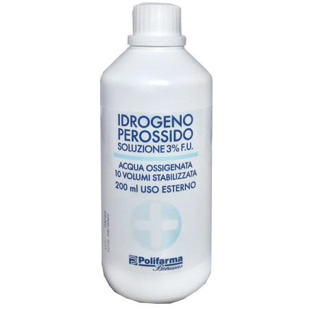 Dettagli PEROSSIDO IDROGENO 3% 200 ML ACQUA OSSIGENATA 10 VOLUMI STABILIZZATA