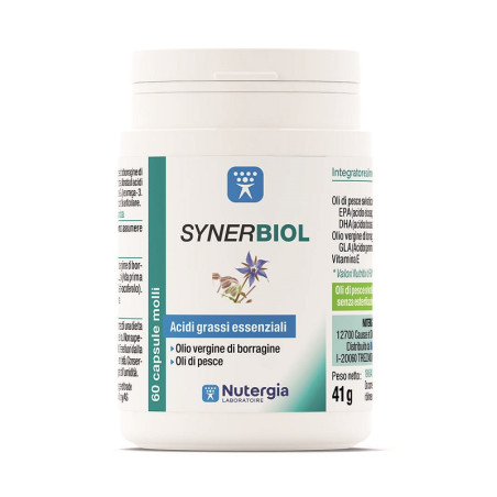 Integratore alimentare di oli di pesce e di olio di borragine di qualità controllata, che apporta una quantità equilibrata di acidi grassi polinsaturi tra cui omega6 vegetale (GLA) e omega£. L'olio di borragine contribuisce alla funzionalità articolare.