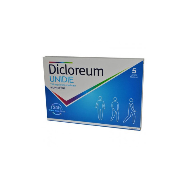 Che cos’è e a che cosa serveDicloreum Unidie è un cerotto medicato contenente come principio attivo ibuprofene, un antinfiammatorio non steroideo (FANS) con una azione antiinfiammatoria e analgesica, che viene rilasciato per via transdermica.