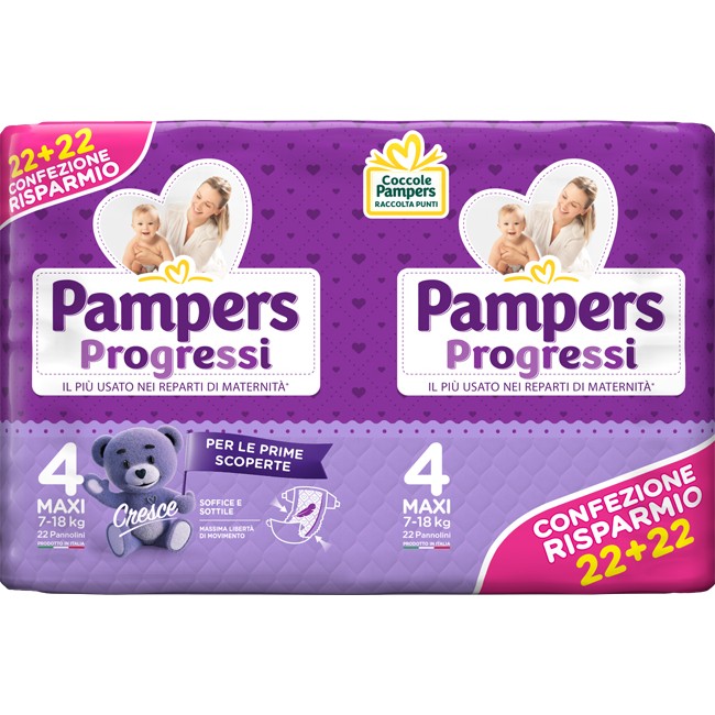 PAMPERS PROGRESSI MAXI PANNOLINO 4 7-18KG 44 PEZZI