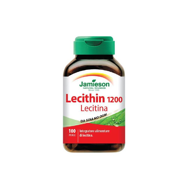Integratore alimentare di lecitina di soia. La lecitina fornisce al corpo la colina (sottoforma di fosfatidilcolina). La colina è considerata un nutriente essenziale annoverato tra le vitamine del complesso B. Una perla di Lecithin 1200 di Jamieson contiene 1.200 mg di lecitina di soia (di cui fosfatidilcolina 11%). La lecitina di Jamieson deriva da soia pura non OGM.