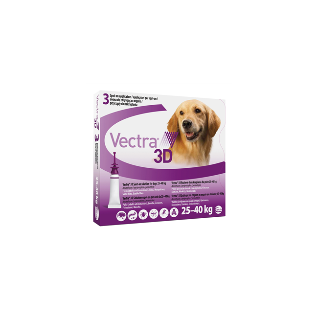 Principi attiviDinotefuran, piriproxifene, permetrina.Controindicazioni/Effetti collateraliNon usare in caso di ipersensibilita' ad uno o piu'... Leggi di piùDettagli VECTRA 3D*3PIP 25-40KG VIOLA