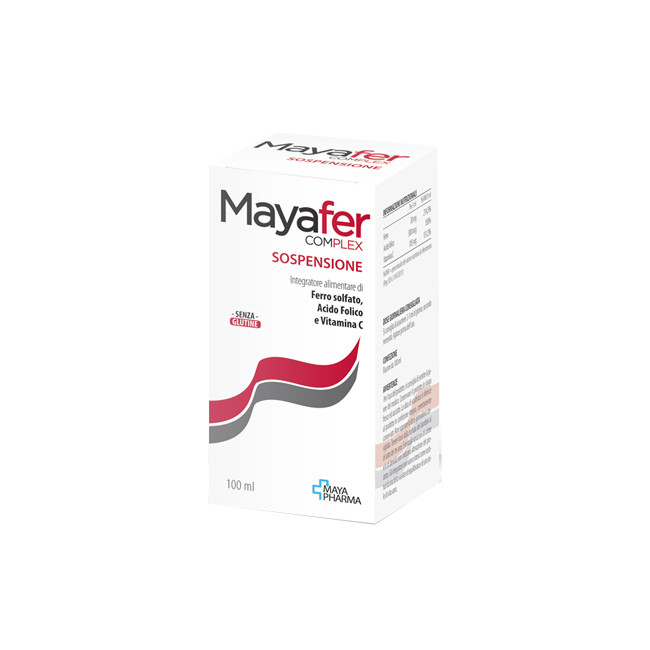 Mayafer Complex sospensione è una associazione di ferro solfato, acido folico e vitamina C che può essere consigliato in tutti i casi di carenza di ferro ed acido folico dovuta ad un insufficiente apporto alimentare e/o nei casi di aumentato fabbisogno legato a particolari condizioni fisiologiche (rapido accrescimento, adolescenza) o condizioni che ne riducono l'assorbimento o ne aumentano le perdite.