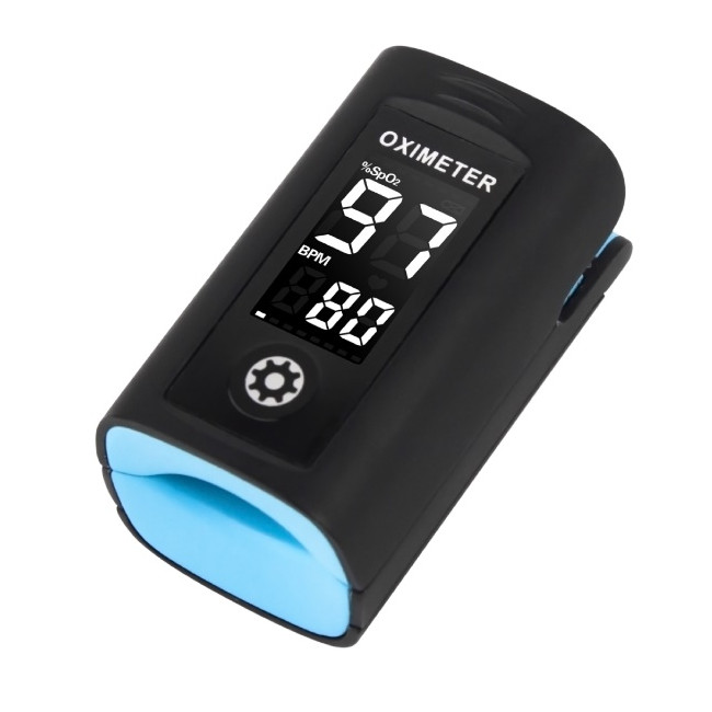 Saturimetro (pulsossimetro) da dito per la misurazione immediata del livello di saturazione dell'ossigeno nel sangue e della frequenza cardiaca espressa in battiti per minuto. Funziona a batterie (non incluse) e, grazie allo spegnimento automatico, garantisce consumi bassissimi. Schermo LCD ruotabile 180°. Indicatore batteria scarica. Cuscinetti in gomma. Leggero, facilissimo da usare, adatto anche ad uso pediatrico.