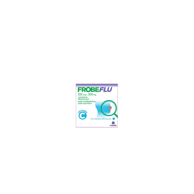 Che cos’è e a che cosa serveFROBEFLU contiene i principi attivi acido acetilsalicilico e acido ascorbico. L'acido acetilsalicilico appartiene al gruppo di medicinali chiamati antiinfiammatori non steroidei utilizzati per il trattamento di dolori lievi e dell'infiammazione. L'acido ascorbico è una vitamina chiamata anche vitamina C. FROBEFLU si usa per il trattamento dei sintomi dovuti a stati febbrili e dolorosi come forme influenzali, raffreddore, mal di testa, mal di denti, dolori reumatici e muscolari, dolori mestruali, dolori ai nervi (nevralgie).