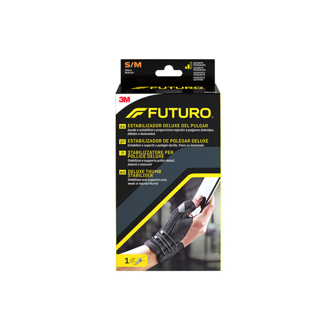 Stabilizza e supporta pollici deboli, dolenti o lesionati. Ideale per: attività quotidiane, invio di SMS, giochi. I due stabilizzatori rinforzati aiutano a supportare il pollice. Sistema di allacciamento semplice per l'applicazione e la regolazione in un'unica azione. Comodo alloggiamento per il pollice.